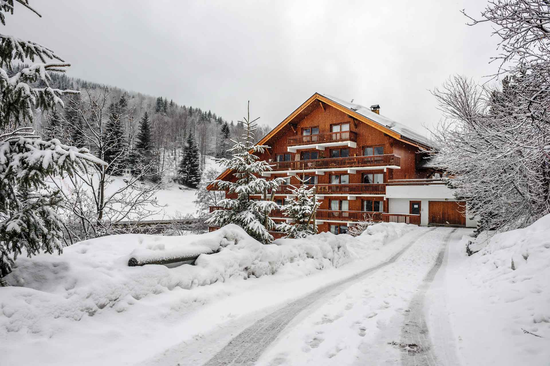 Mountain ski resort with snow in winter, Meribel, Alps, France